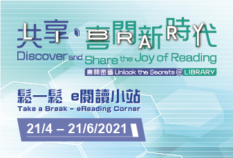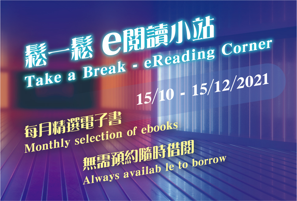 香港公共圖書館多次舉辦「鬆一鬆 e閱讀小站」電子書推廣活動,於指定時間內,精選電子書不設借閱限額,無需預約即可免費借閱,方便讀者隨時隨地閱讀熱門電子書,忙裏偷閒輕鬆一下。密切留意下一次「鬆一鬆 e閱讀小站」推出!