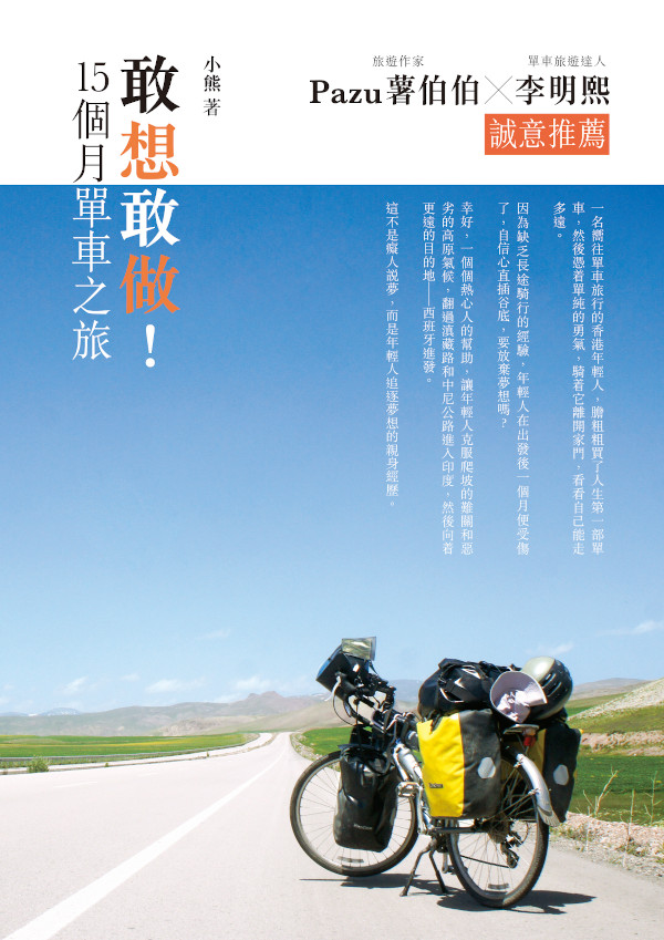 紙本書 這是一個嚮往單車旅行的年輕人,由香港騎單車到西班牙的經歷,是一個憑着勇氣和意志完成夢想的故事。作者以文字記錄這趟單車之旅所遇到的困難與美好。在開始旅程初期,他因為缺乏長途騎行的經驗而致使身體受傷;在遇到各種……