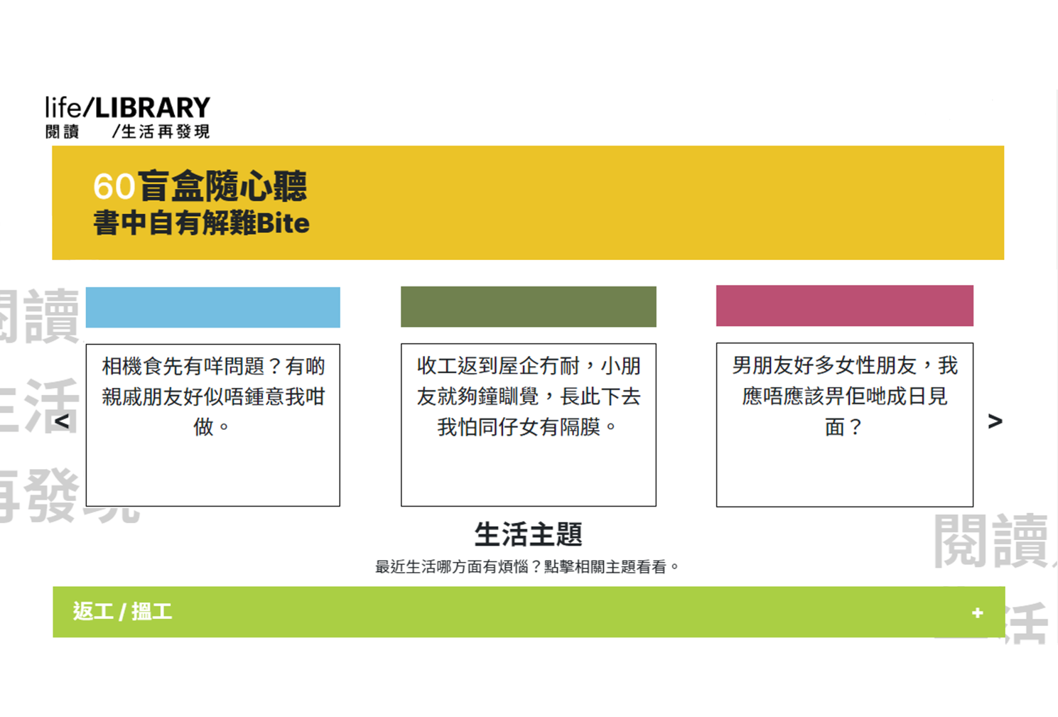 60個盲盒,60個有關生活的問題。請打開盲盒,看看收藏在內的書本節錄可否為你帶來啟發。
